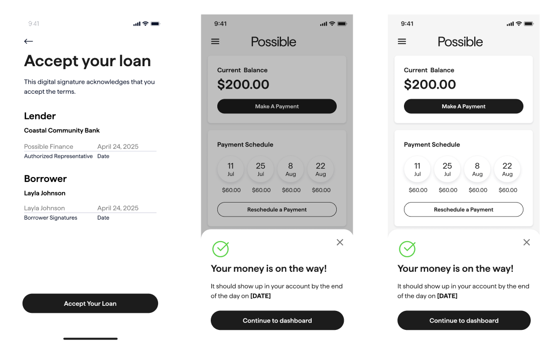 At Possible Finance, I’ve spent over three years as a Senior Product Designer helping shape and scale a mission-driven financial platform. From redesigning core user experiences to launching entirely new product features, my work has been grounded in improving access and equity for underserved communities. I’ve worked across mobile and web platforms to ensure that every interaction is clear, intuitive, and inclusive.
